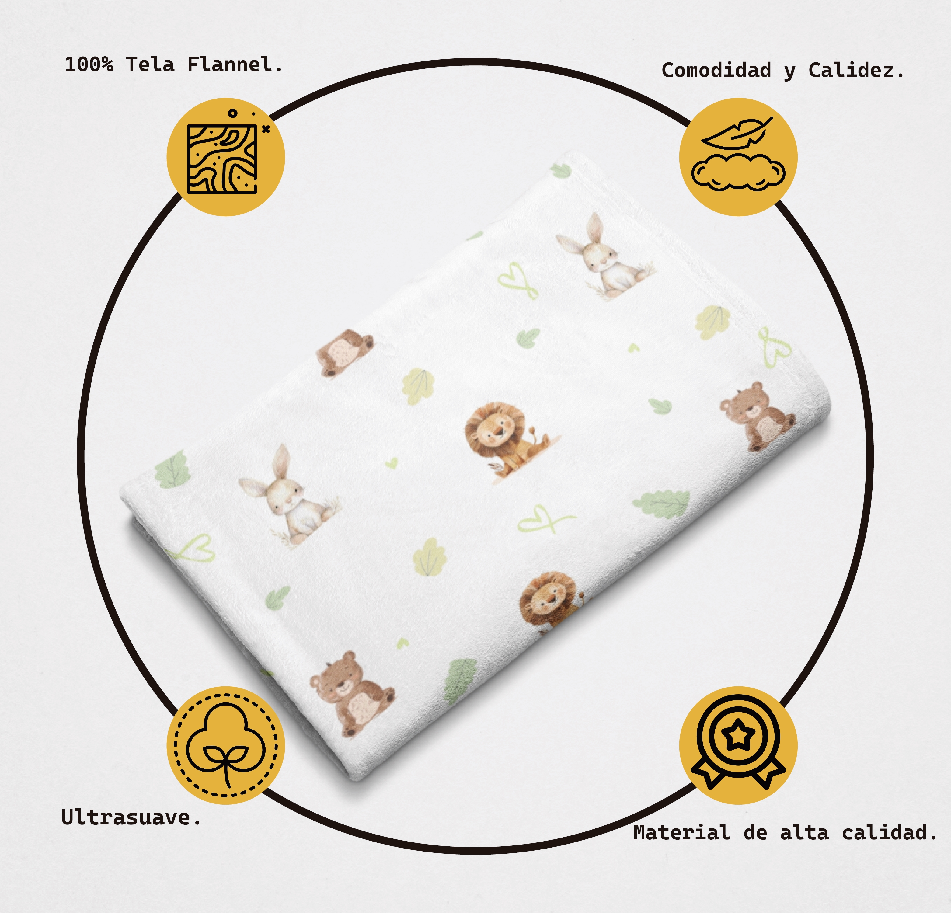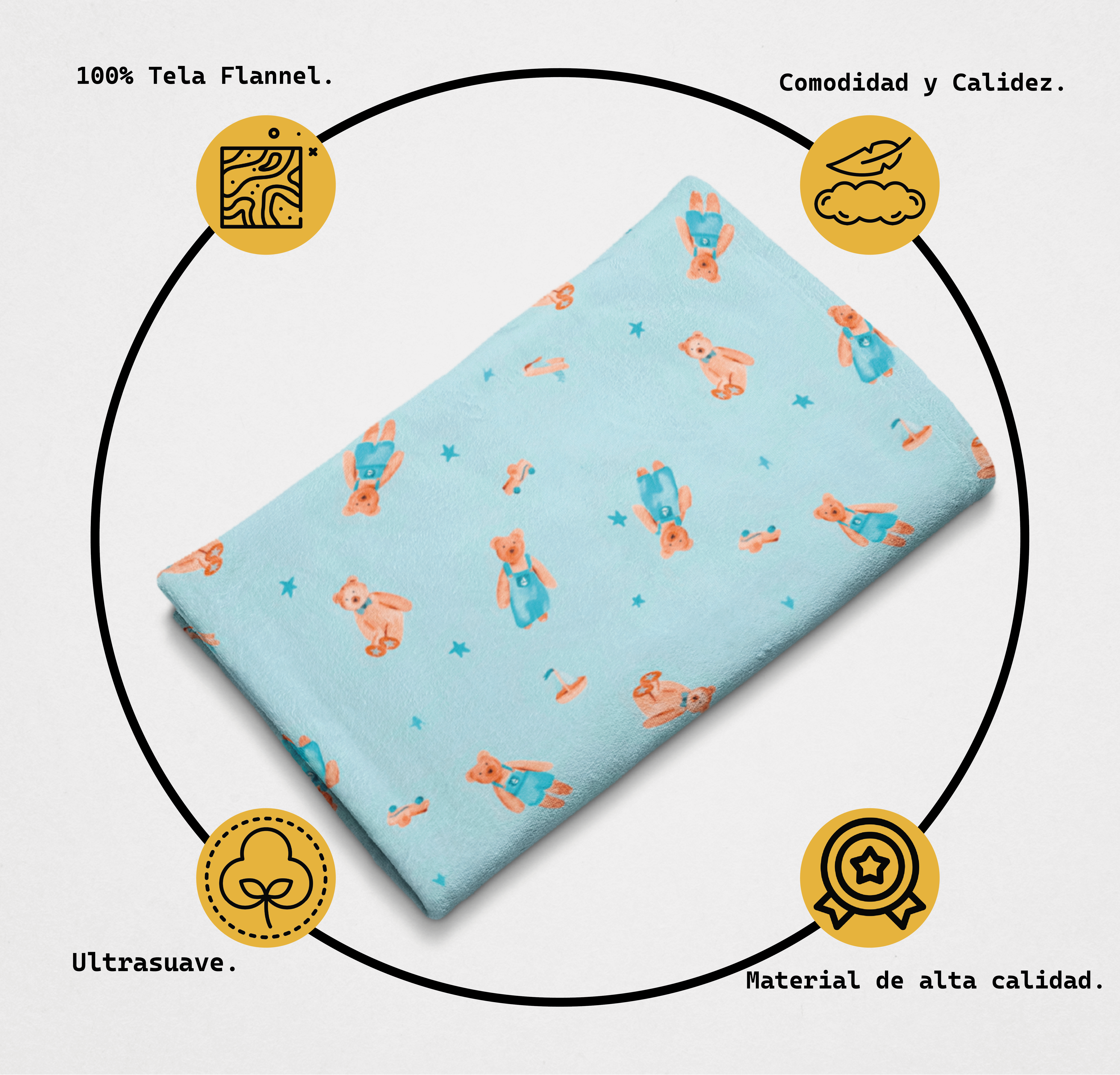 Envuelve a tu pequeño en la suavidad de nuestra cobija de bebé de flannel, confeccionada con tela de alta calidad que brinda una textura cálida, ligera y muy acogedora. Su excelente impresión asegura colores vivos y detalles adorables que no se desvanecen con las lavadas, ideal para acompañar los momentos más tiernos del día a día. Perfecta para cuna, carriola o siestas en casa, esta cobijita combina confort, diseño y durabilidad para el cuidado de tu bebé.